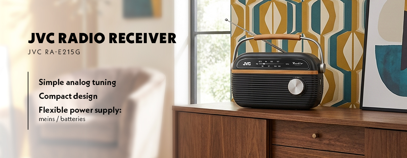 A JVC RA-E215G rádió ideális választás mindazoknak, akik egyszerű és megbízható FM rádiót keresnek bonyolult funkciók nélkül. A klasszikus analóg hangolásnak és a kompakt méretnek köszönhetően nagyszerű társ otthonra, nyaralóba vagy akár a műhelybe.