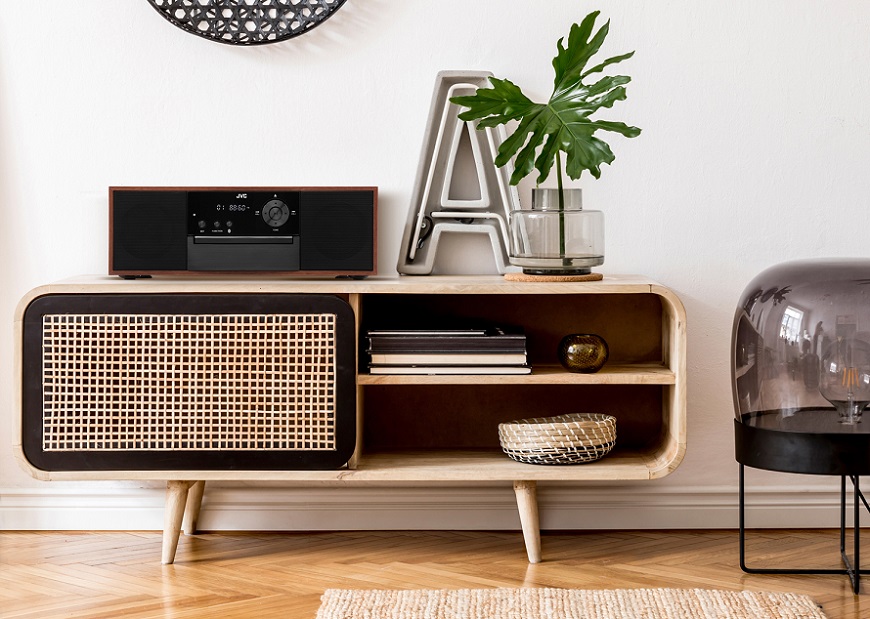 Így jellemezhető az elegáns JVC RD-E761 asztali lejátszó, amelyen többféleképpen is meghallgathatja kedvenc zenéjét. A készülék anyaga fa, fekete kiegészítőkkel kombinálva. Kiválóan illik bármilyen beltéri helyiségbe.